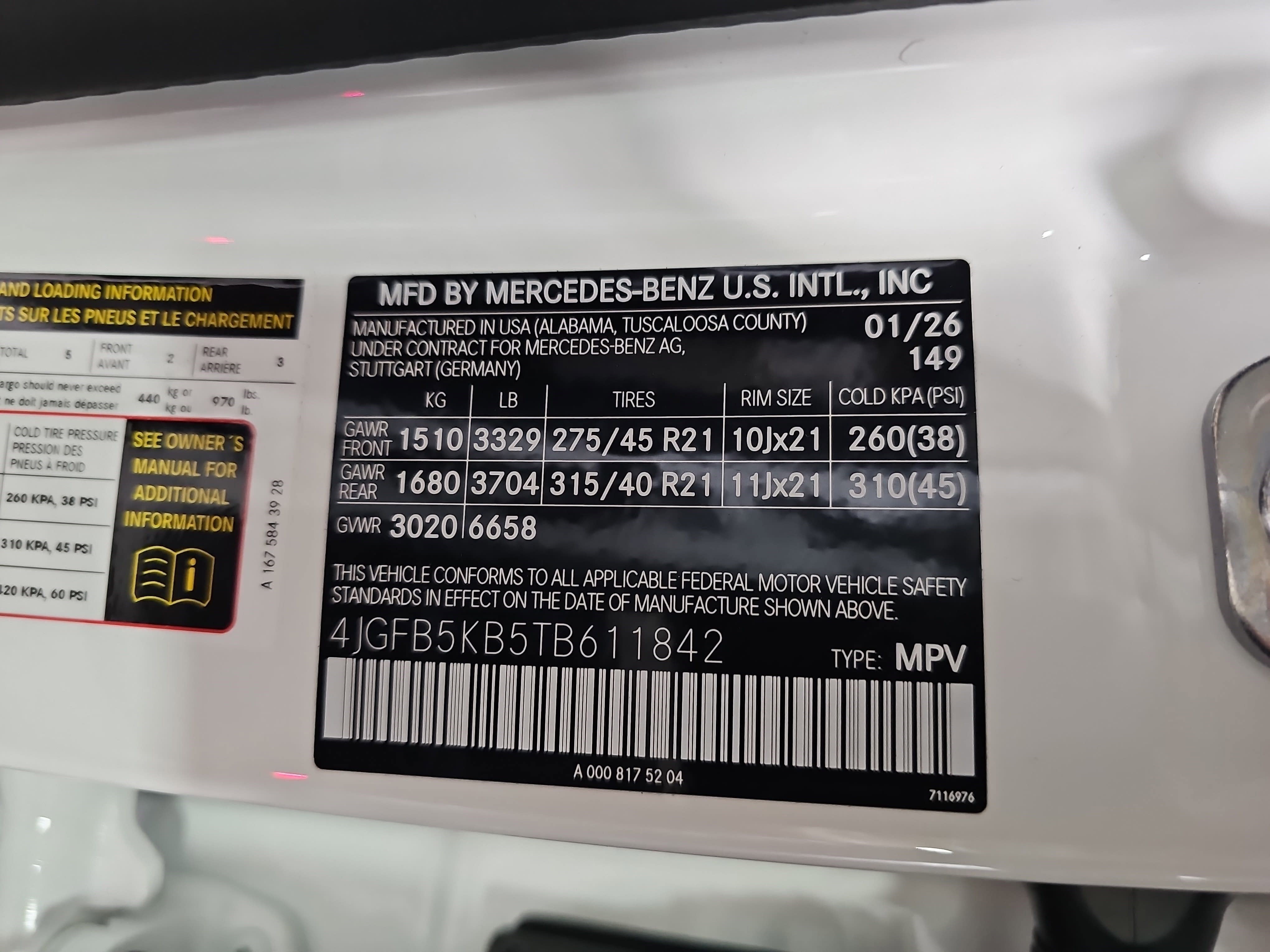 - Front Tire Size: P275/45HR21