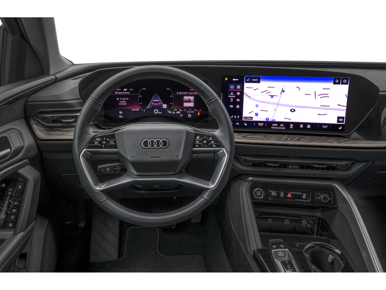 - Radio: MMI Navigation Plus -inc: Audi connect CARE (limited time subscription), Audi connect NAV and Plus (limited time subscription, acceptance of terms required), Audi smartphone interface (wireless Apple CarPlay and Android Auto), Audi sound system, Audi virtual cockpit plus w/11.9" screen, MMI touch display w/14.5" center screen and SiriusXM w/360L (3-month trial)